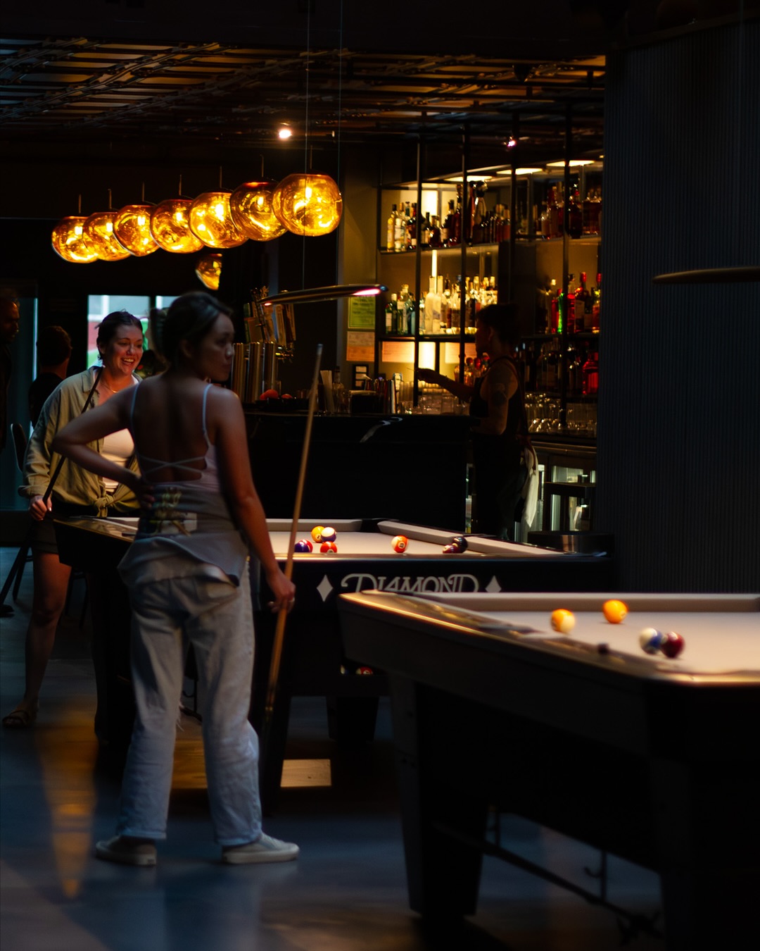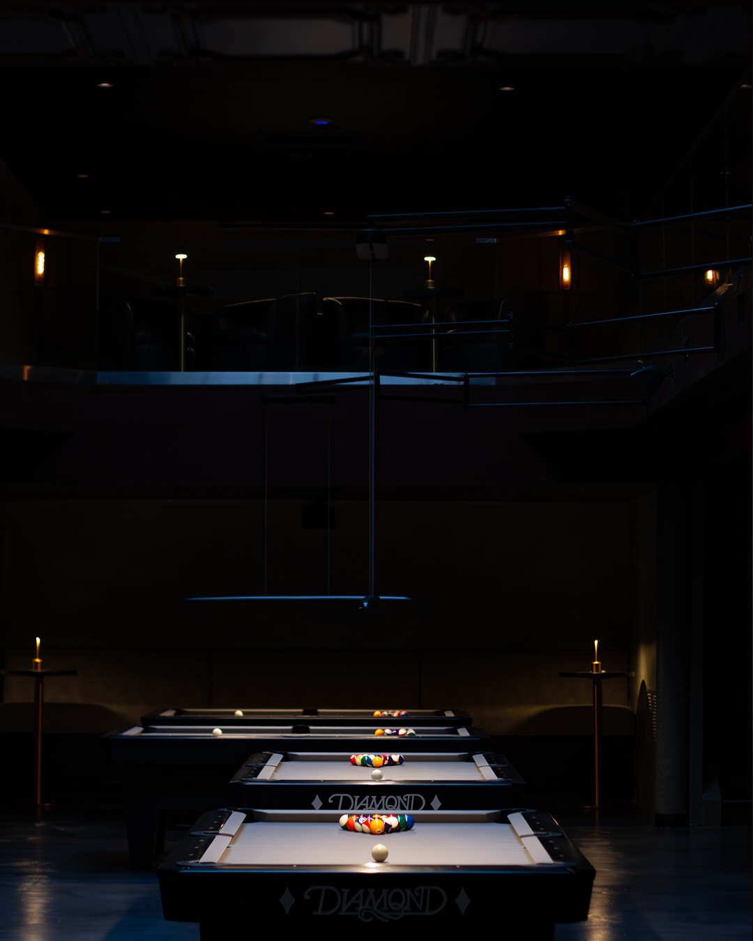 These professional-grade tables deliver the precision and performance Diamond is known for, while their sleek design perfectly complements The Hall’s upscale interior. The tables’ refined finish and rich detailing blend beautifully with the lounge’s modern lighting, custom bar, and high-end décor — striking the ideal balance between contemporary style and classic billiards tradition.