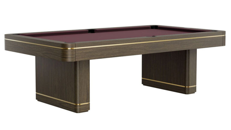 The Deco Pool Table from Plank & Hide pays tribute to the timeless allure of Art Deco, reimagined with a modern twist. Inspired by the geometric elegance of the era, it combines luxurious brass or chrome inlays with a rich Black or Brushed Greige finish, creating a striking contrast that speaks of sophistication and style. Its unique seamless uni-body, concealed pockets, and diamond inlay sights add a touch of refined precision to a classic-inspired design.