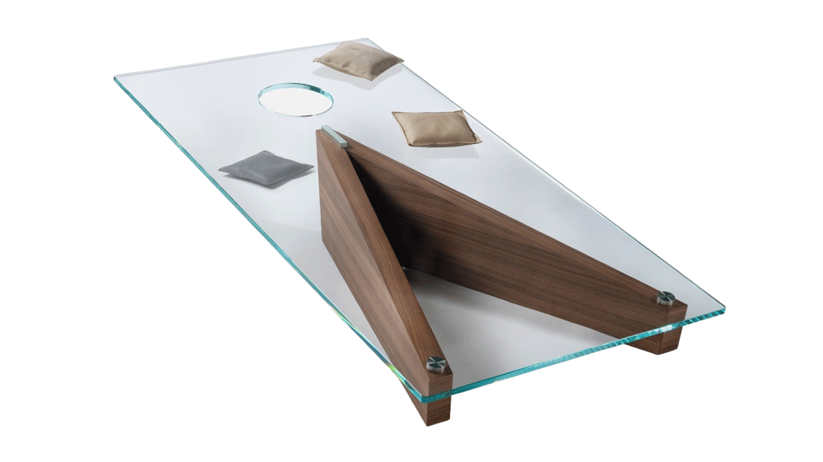 Designed by the Impatia R&D team, the Lancio Wood is a modern cornhole game featuring a sleek glass playing surface and a solid wood base. Accessories included are 4 premium Alcantara and Leather bags. Blending luxury with play, it’s built for both indoor and outdoor use. Handcrafted in Italy, this certified piece combines durability, elegance, and versatility—bringing a refined touch to any space or gathering.