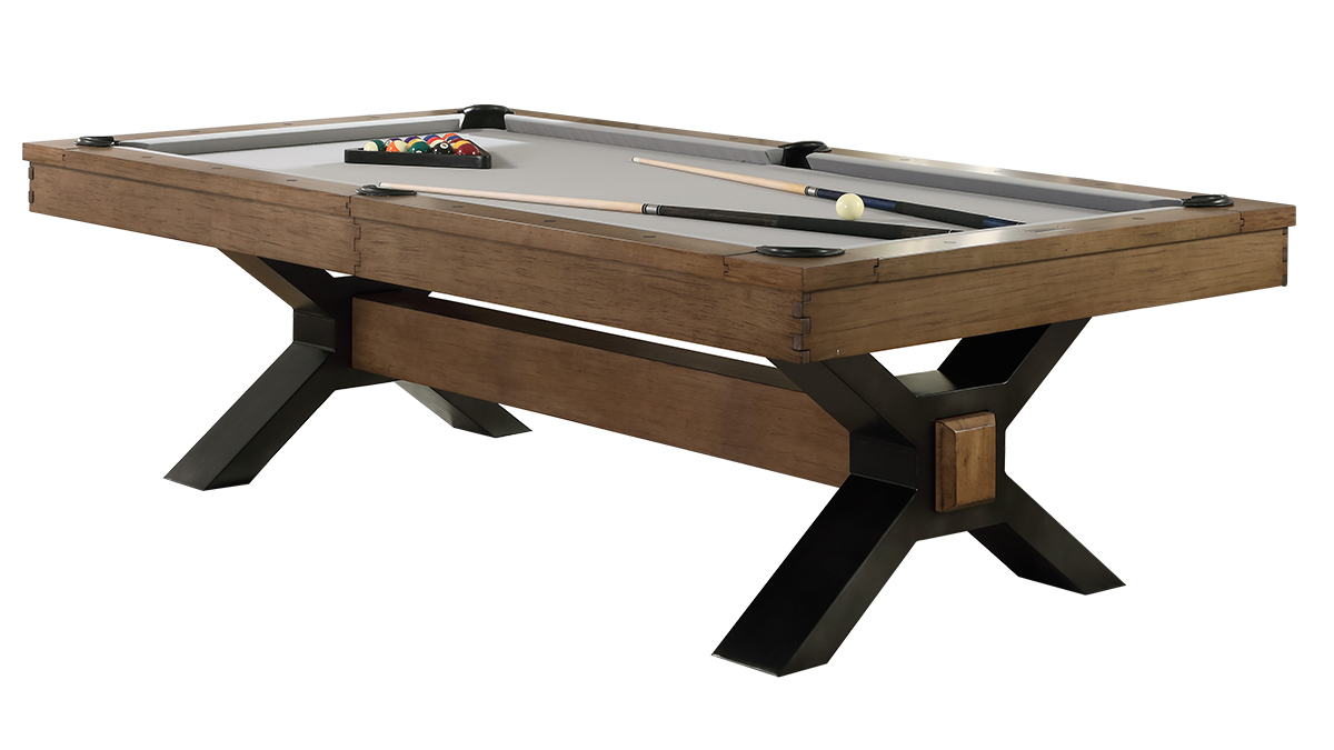 The Nichols Pool Table from the Plank & Hide Vintage Series beautifully merges modern industrial design with rustic charm. Featuring a bold X-base, solid wood construction, and intricate detailing, it exudes strength and style. Double interlocking beams and single-piece steel legs provide unmatched stability. Concealed pockets preserve its sleek look, while dovetailed aprons and rails, along with precision diamond-shaped sights, highlight the craftsmanship behind this timeless, performance-driven piece.