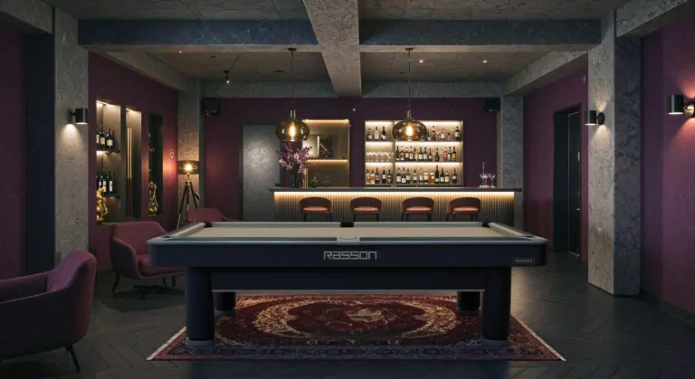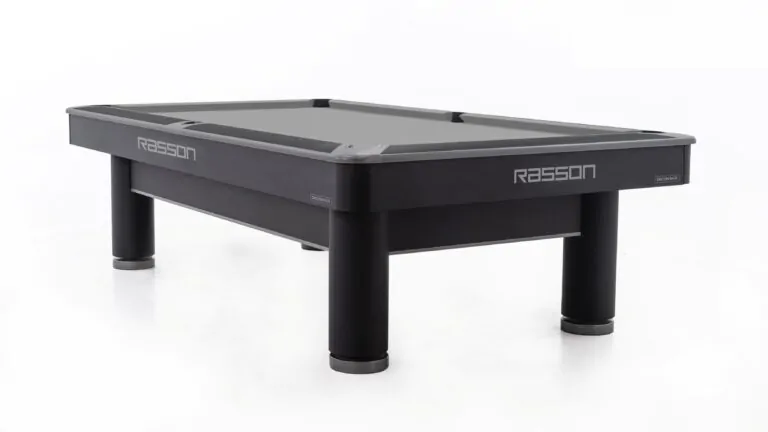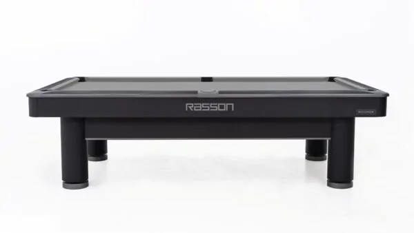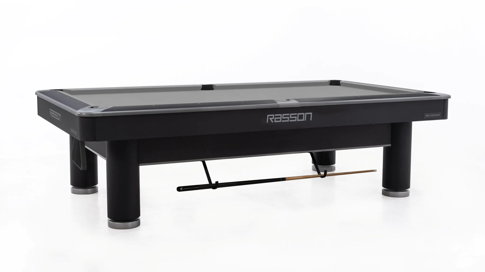 Engineered for strength, precision, and sleek modern appeal, the Rasson Iron Man Pool Table lives up to its name with a bold industrial design and rock-solid performance. Featuring a 25mm thick premium slate, and Rasson’s patented leveling systems, this table delivers uncompromising consistency and accuracy. Its matte black carbon steel legs and low-profile cabinet create a streamlined silhouette, while aluminum alloy trim and anti-warp rails offer long-lasting durability and style. Built to WPA specifications, the Iron Man is ideal for competitive venues, upscale game rooms, or anyone who takes their game seriously.