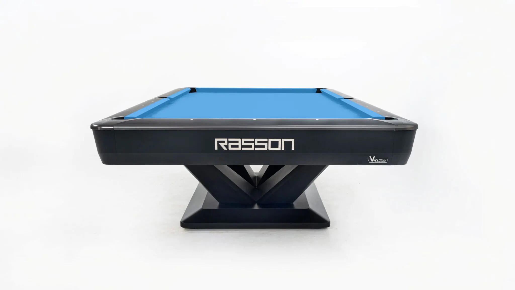 The Rasson Victory III Pool Table features a striking design with unique pedestal legs that form a bold “V” shape from every side. Engineered for professional performance, it includes Rasson’s patented Slate Leveling System (SLS) and Leg Leveling System (LLS), 30mm thick premium Rasson slate, MAX (K55) rubber cushions, and a reinforced aluminum alloy beam ensure exceptional consistency, responsiveness, and long-lasting durability.