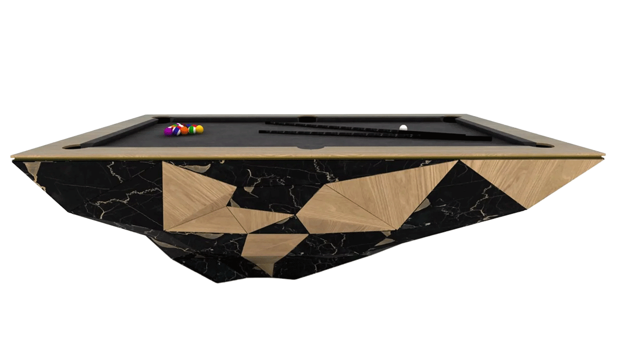 A sharp design merges with the art of lighting to represent the dawn of a new way to think about a pool table’s shape. Its aesthetic is the result of a four hands project Massimiliano Maggio developed with his friend and designer Fabio Bronda: they managed to give life to hundreds of single, different pieces merged together like a perfect puzzle.